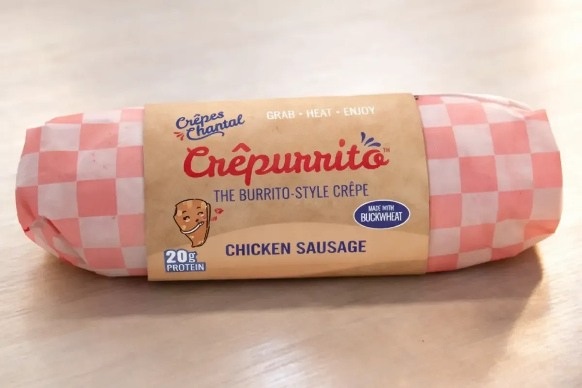 Savory Organic Wheat Crêpe filled with Scrambled Cage Free Eggs, Chicken Sausage, Potatoes, Mexican Cheese Blend, Caramelized Onions, Bell Pepper, Salt, Pepper.