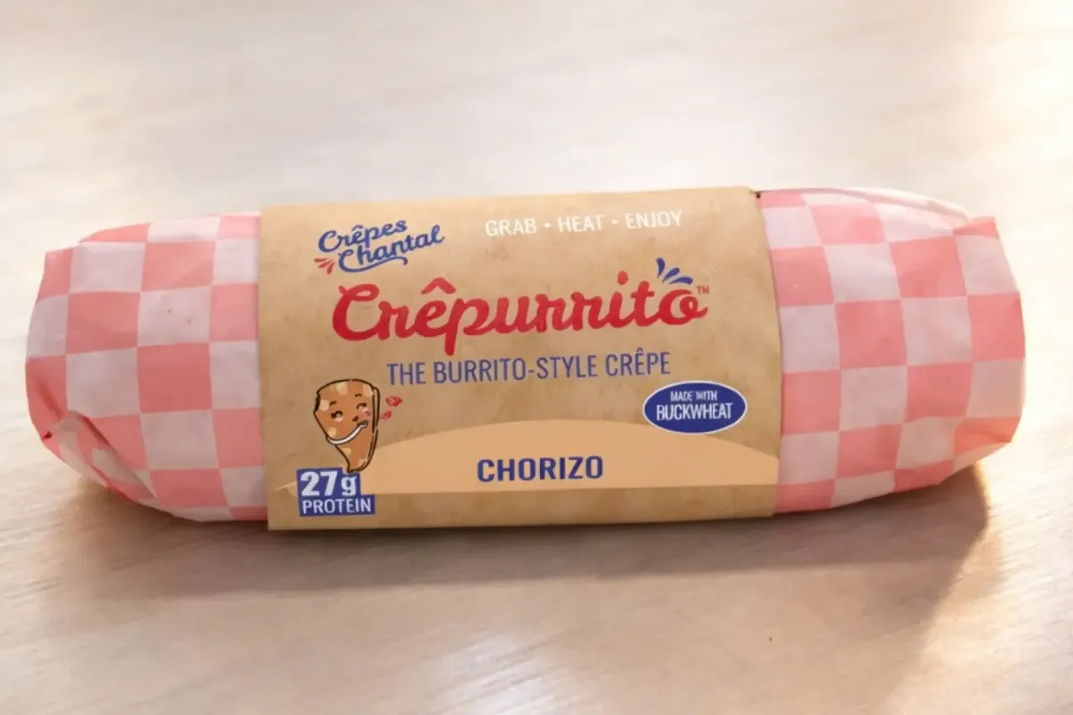 Savory Organic Wheat Crêpe filled with Scrambled Cage Free Eggs, Chorizo, Potatoes, Mexican Cheese Blend, Caramelized Onions, Salt, Pepper.